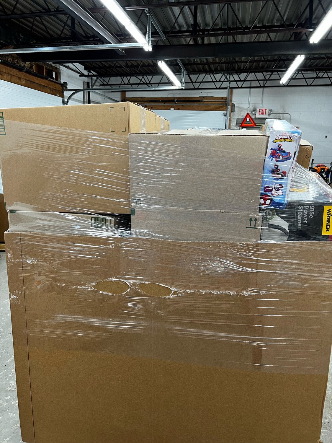 Pallet of liquidated miscellaneous amazon returned merchandise ranging from assorted kitchenware, baby items, electronics, small gadgets, tools, Home goods, & more. Nothing is guaranteed as the pallet is sold AS IS, there are no returns, exchanges, refunds or warranty. The pallet must be picked up from American liquidations within 2 days of purchase in Prospect, CT 06712.