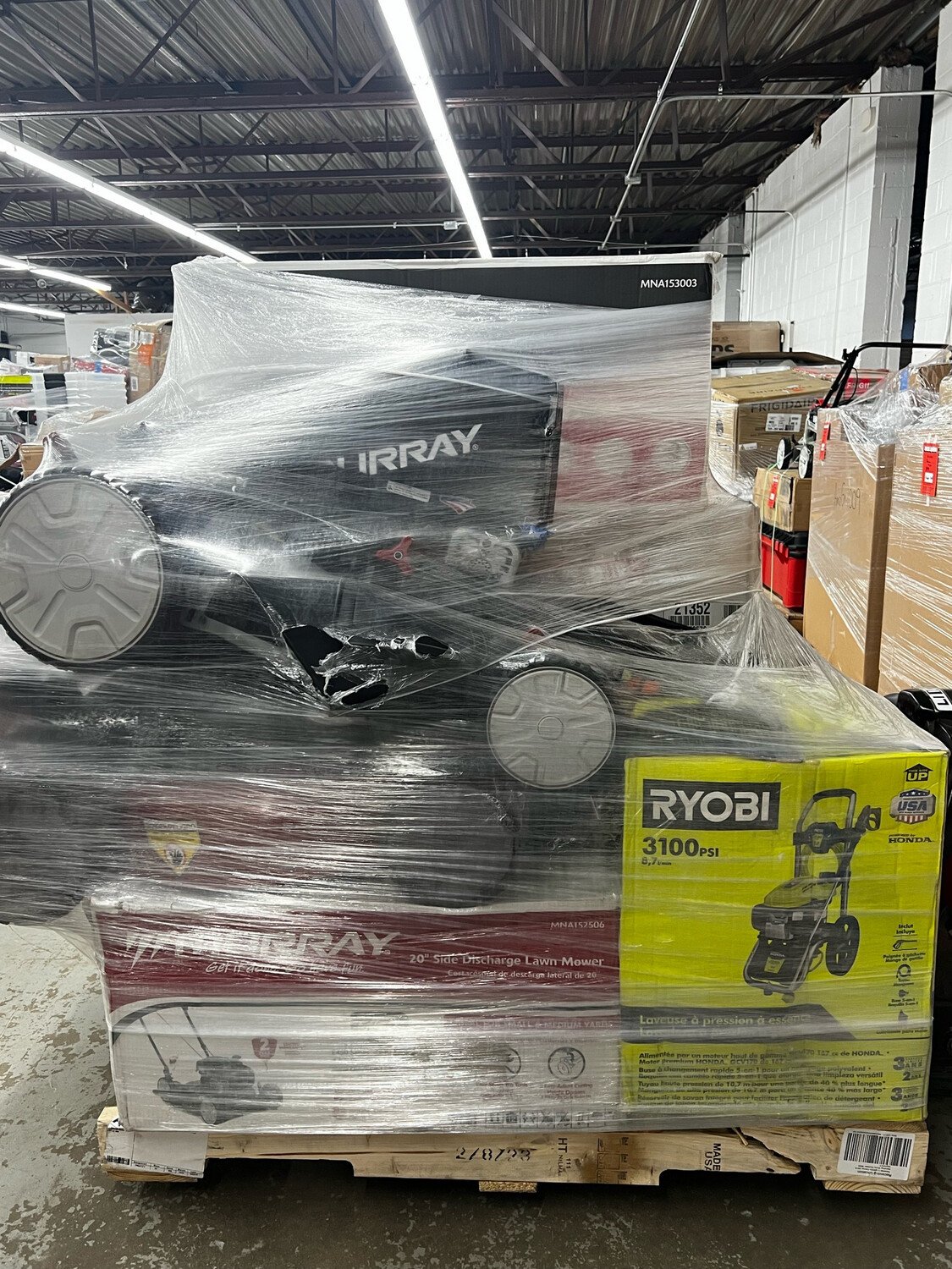 This is a pallet of liquidated merchandise from Home Depot containing anything from lawnmowers, ACs, Dehumidifiers, storage Bins, Range Oven Hoods, and many More! These pallets are great for all resellers ! Nothing is guaranteed as the pallet is sold AS IS, there are no returns, exchanges, refunds or warranty. The pallet must be picked up from American liquidations within 2 days of purchase in Prospect, CT 06712.